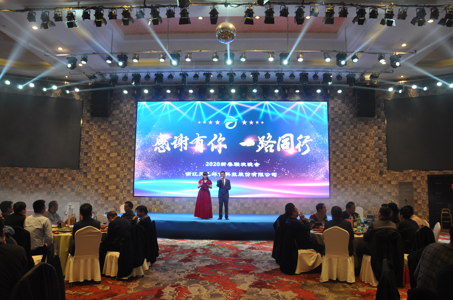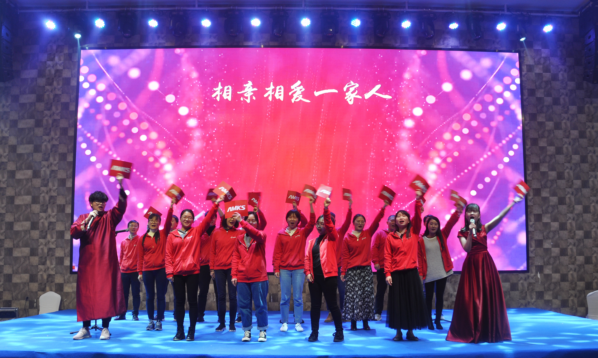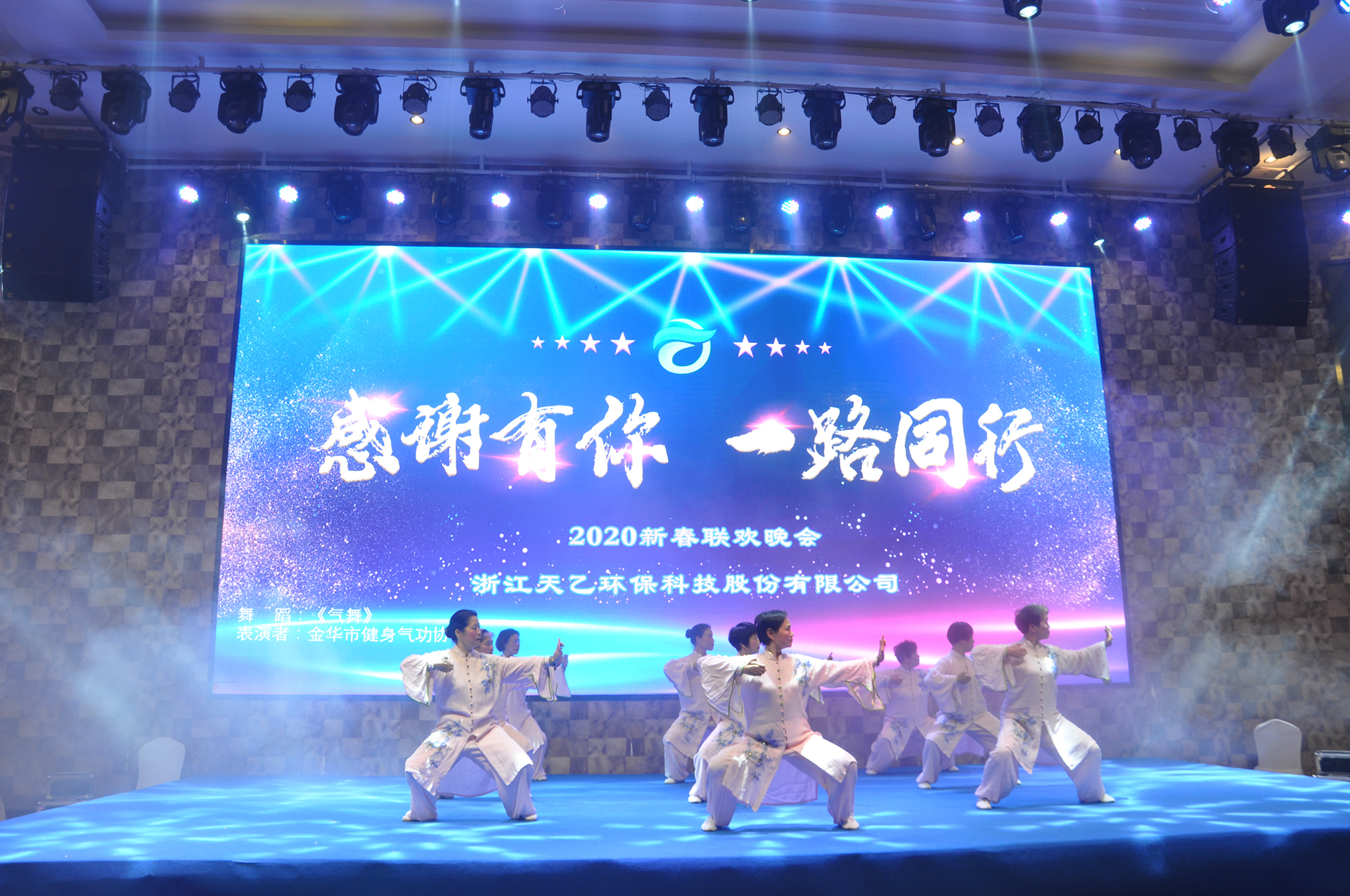 In the evening, in Jinhua hall, the New Year Party of Tianyi environmental protection & AMKS was held on time.